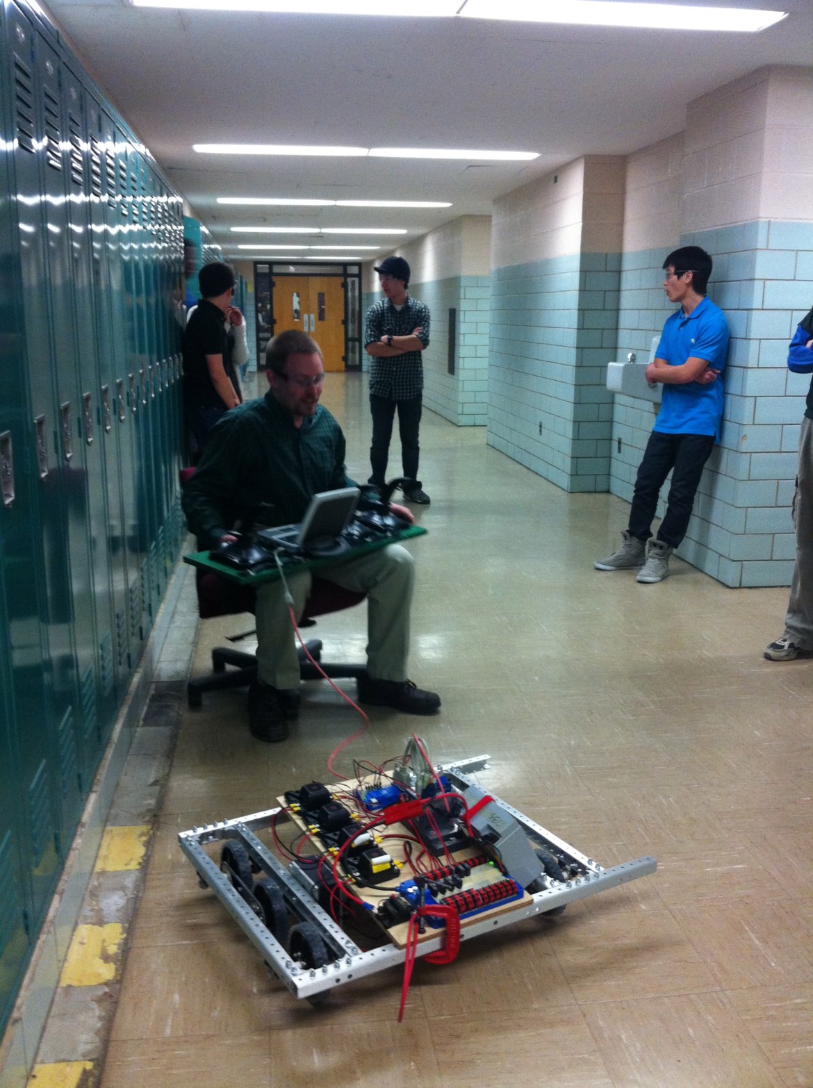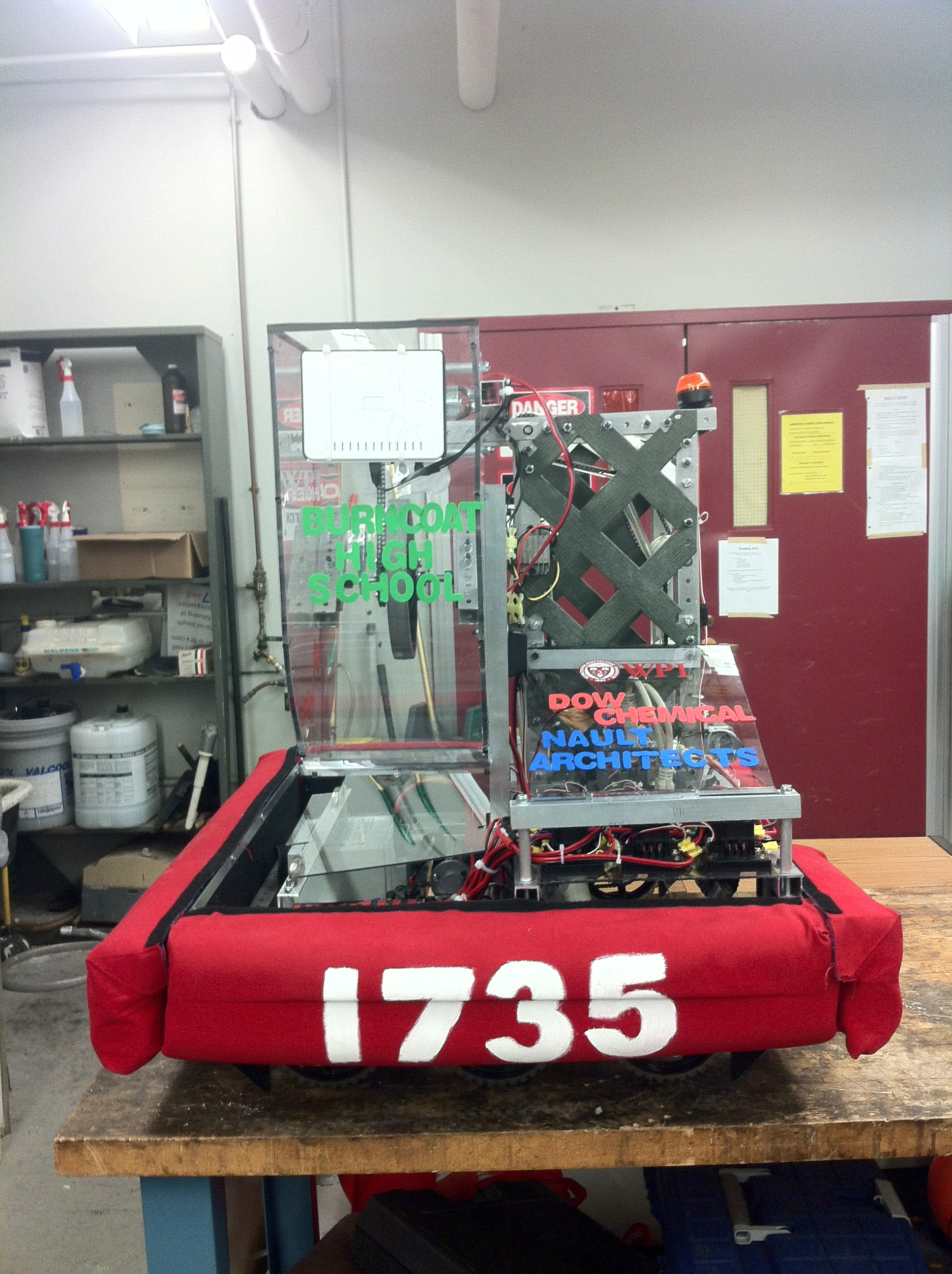 When we arrived at the WPI Regional the “ka-chop” was added to the robot. This toggled the bridge so that the robot could drive up it.