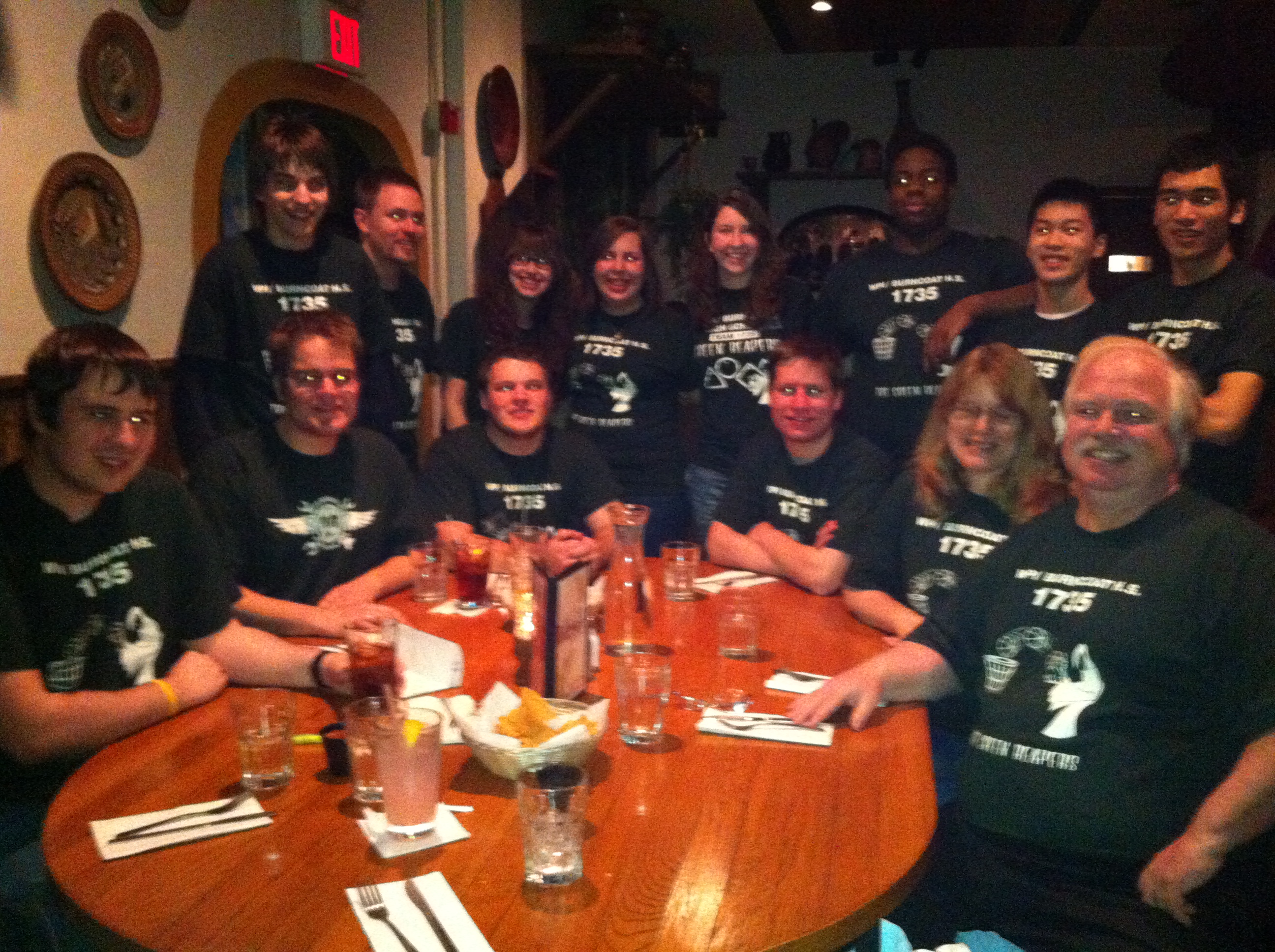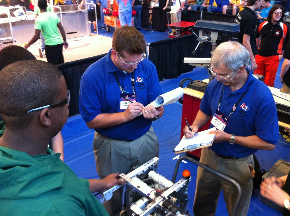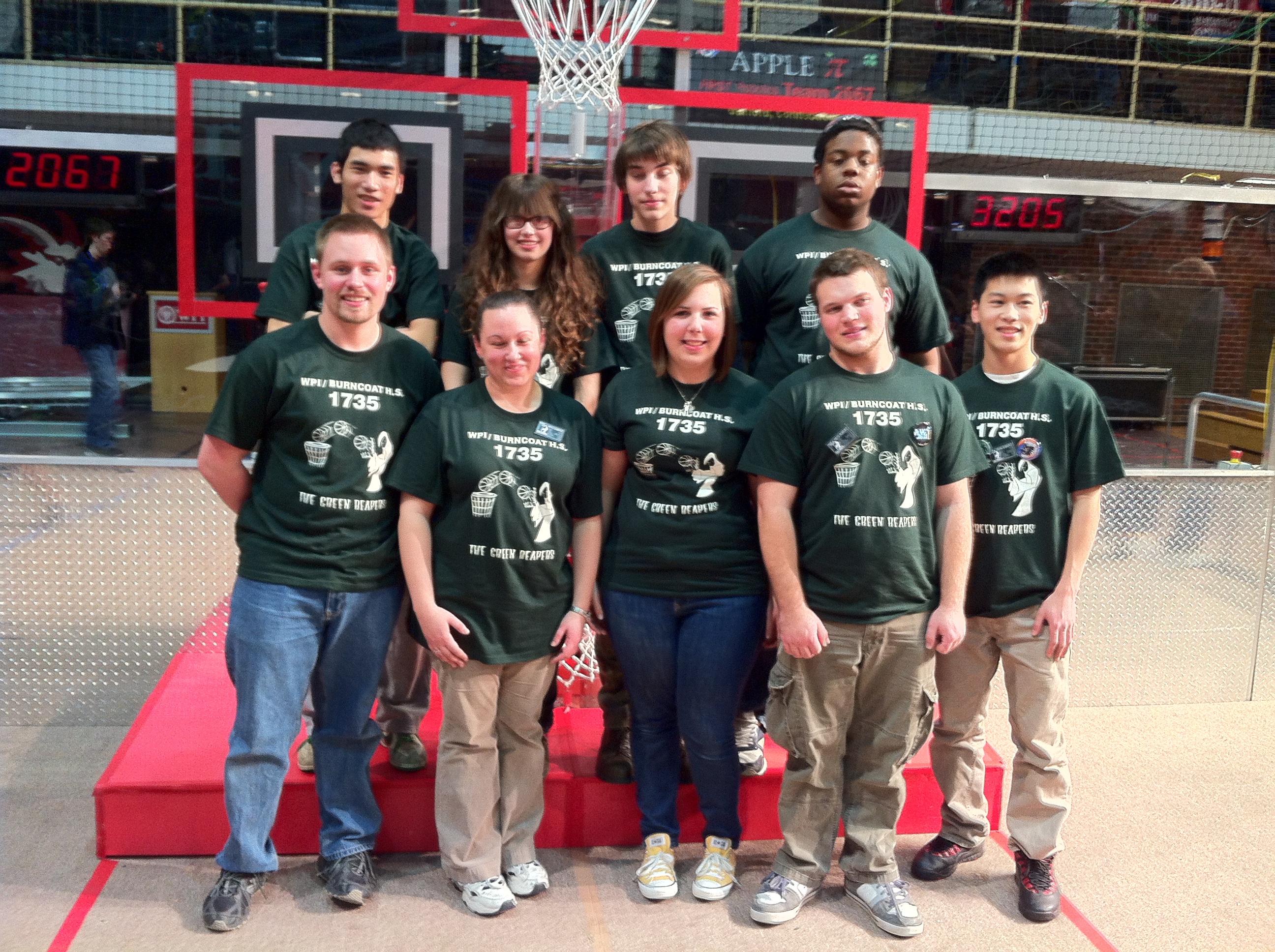 Rebound Rumble is a game played on a 54′ x 27′ field. Two alliances of three teams compete against each other to score the most amount of points by shooting foam basketballs into hoops. At the end of the match robots would balance on bridges in the middle of the field to gain additional points. Balancing on the middle middle bridge, call the Coopertition Bridge, with the opposing alliance resulted in an additional win for both teams.